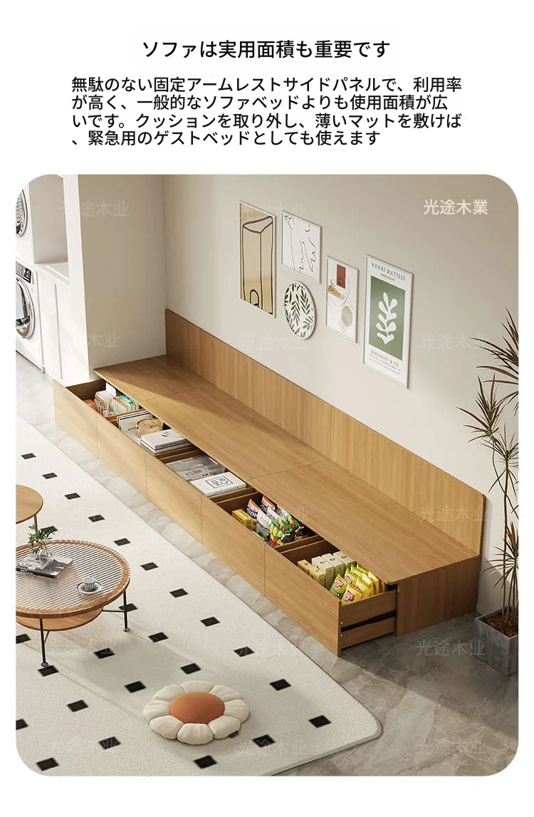 コンパクトで収納力抜群!モダンミニマリストの高箱タタミソファ - 引き出し式カウチで多機能、リビングに最適なスタイルを実現!