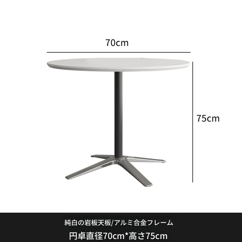 丸テーブル:70*75cm【純白の岩板天板/アルミ合金フレーム】