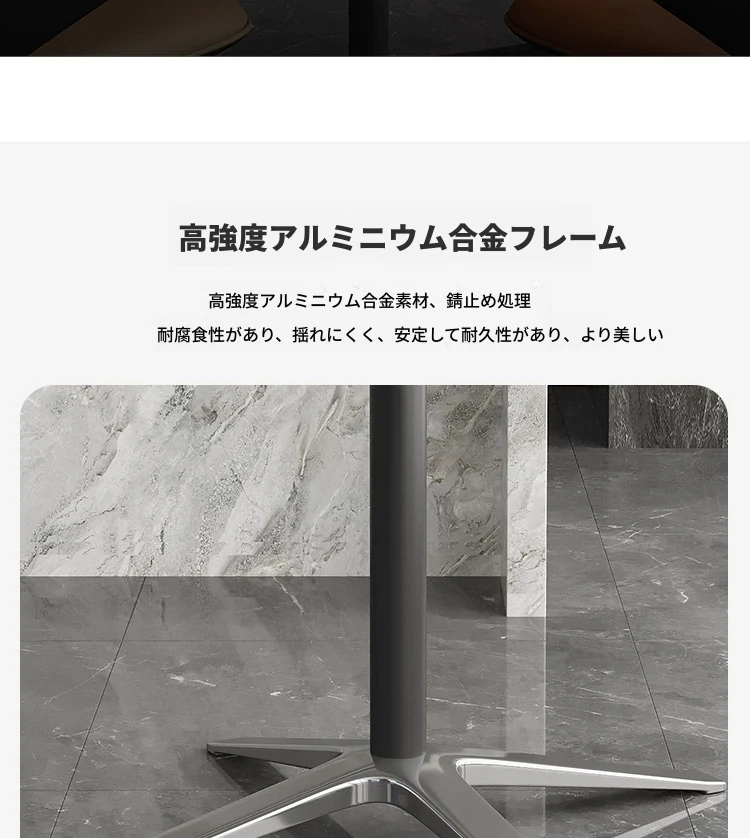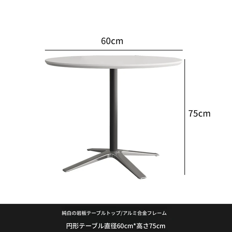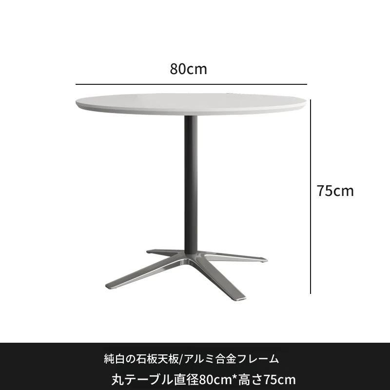 丸テーブル:80*75cm【純白の岩板天板/アルミ合金フレーム】
