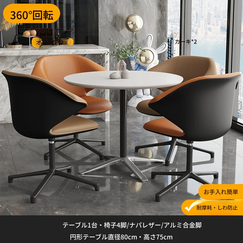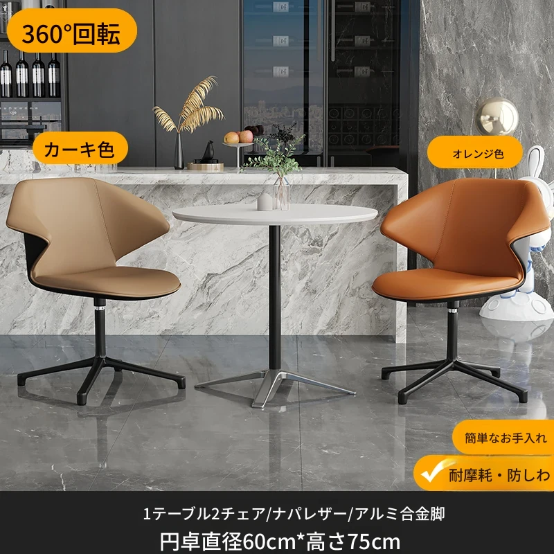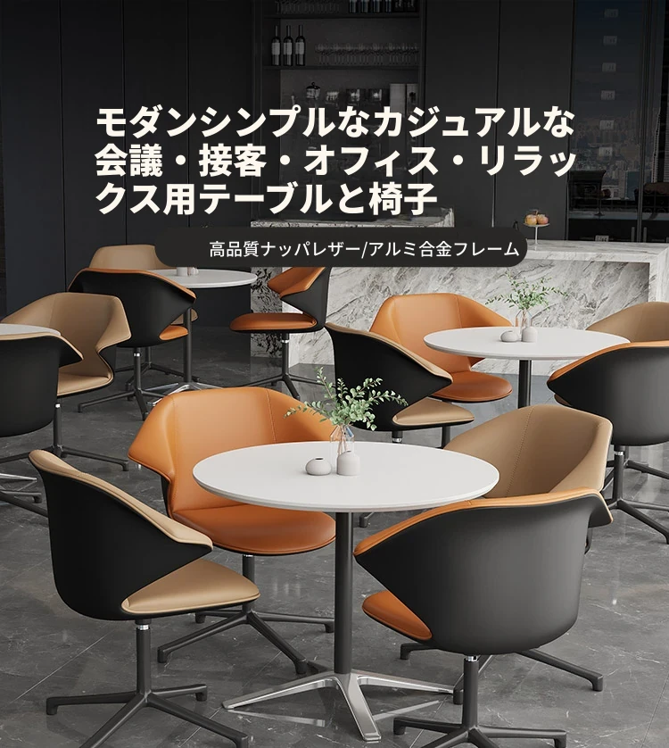 軽やかなラグジュアリー感!不動産営業所に最適な談話テーブル&チェアセット、カフェやホテルの受付にもぴったり。くつろぎの4S店に最適な回転式シングルチェアで、訪れるお客様を心地よくお迎えします。