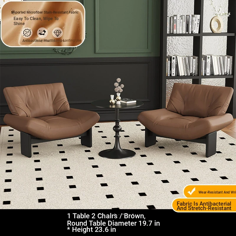 1 Table 2 Chairs + Round Table 19.69in [Brown/Ultra fiber leather]]