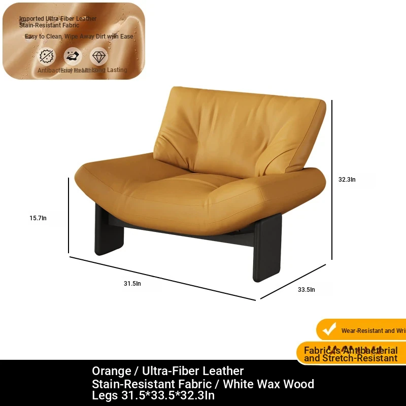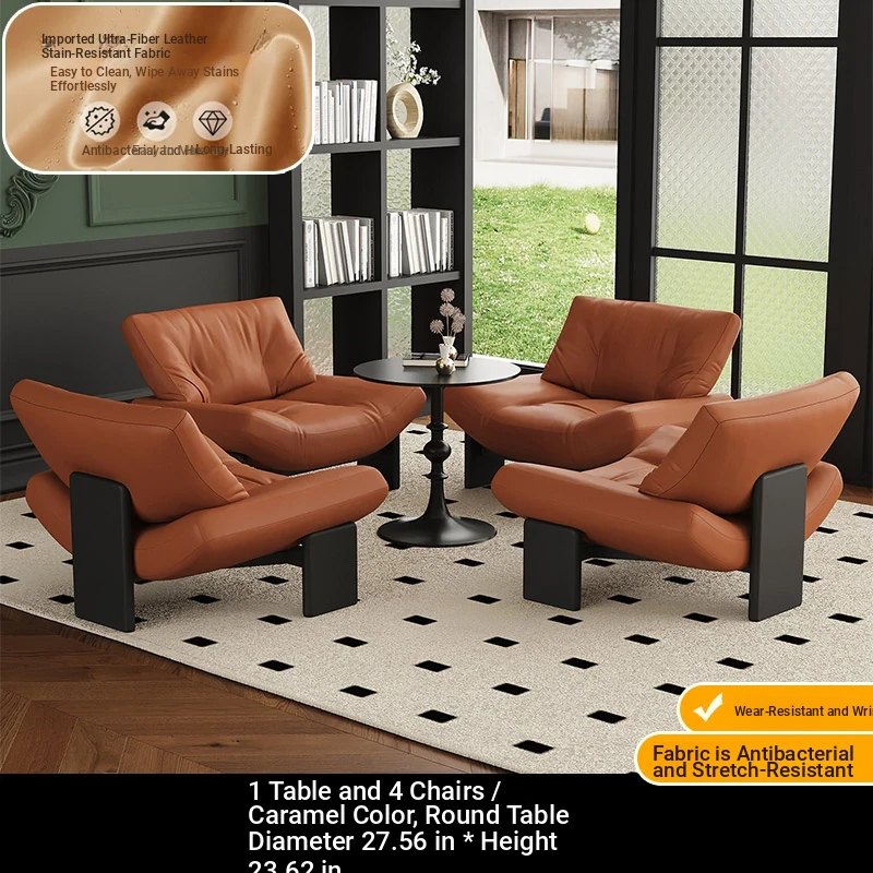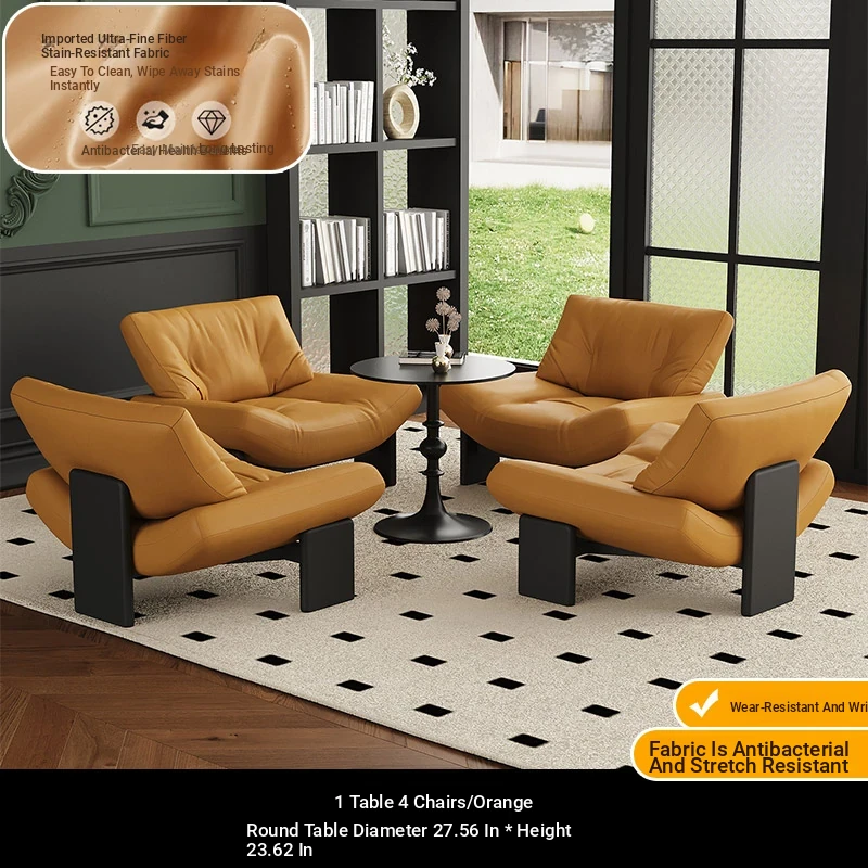 1 Table 4 chairs + Round Table 27.56in [Orange/Ultra fiber leather]]