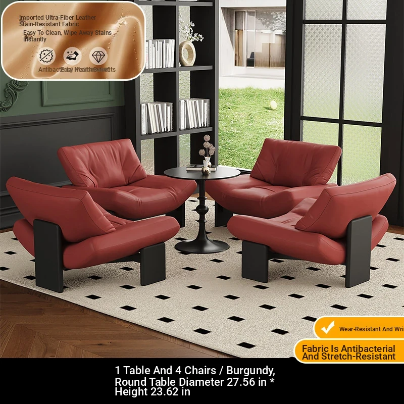 1 Table 4 chairs + Round Table 27.56in [wine red/Ultra fiber leather]]