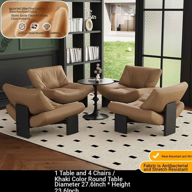 1 Table 4 chairs + Round Table 27.56in [khakis/ultra-fiber leather]]