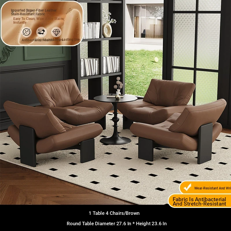 1 Table 4 chairs + Round Table 27.56in [Brown/Ultra fiber leather]]