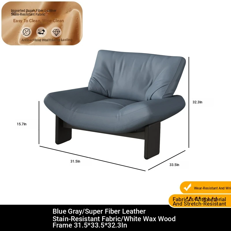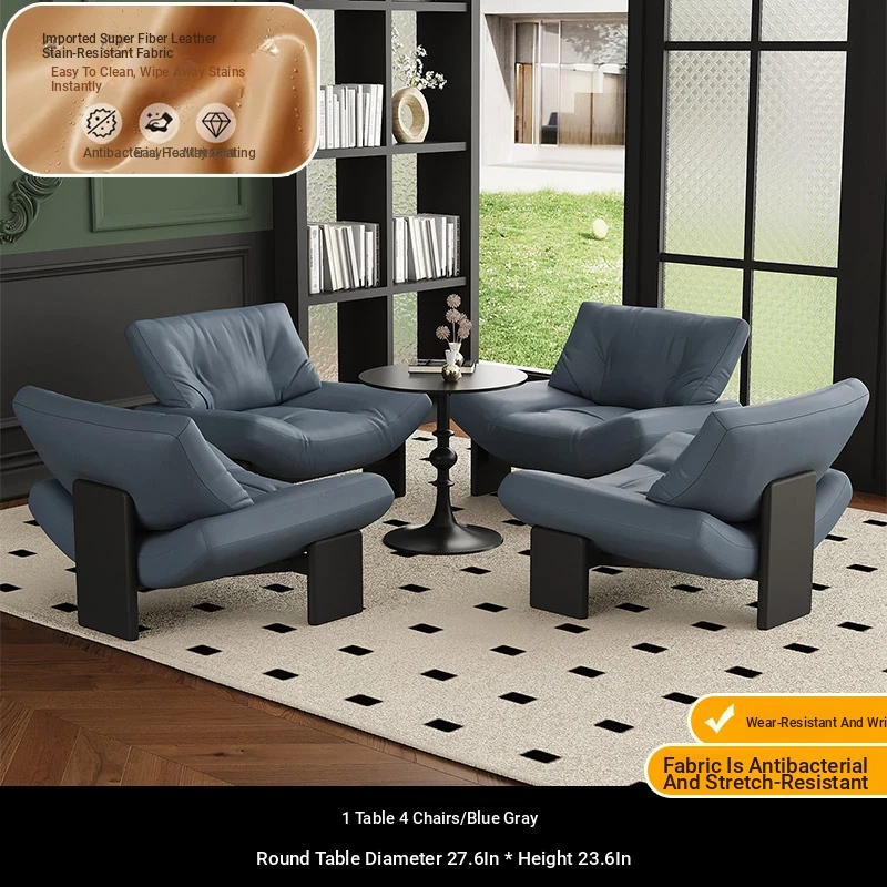 1 Table 4 chairs + Round Table 27.56in [Blue Gray/Ultra fiber leather]]