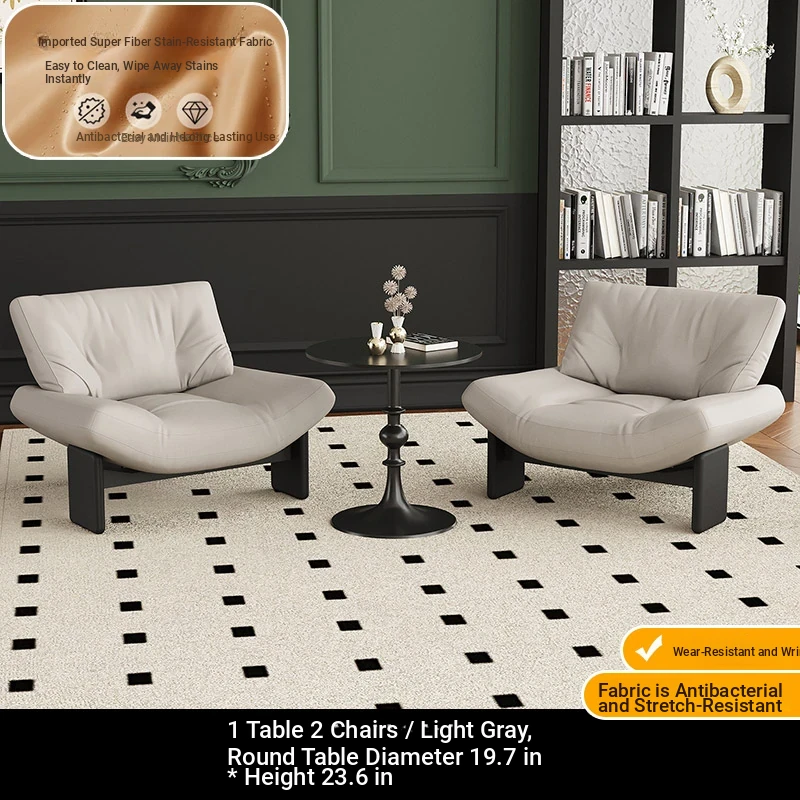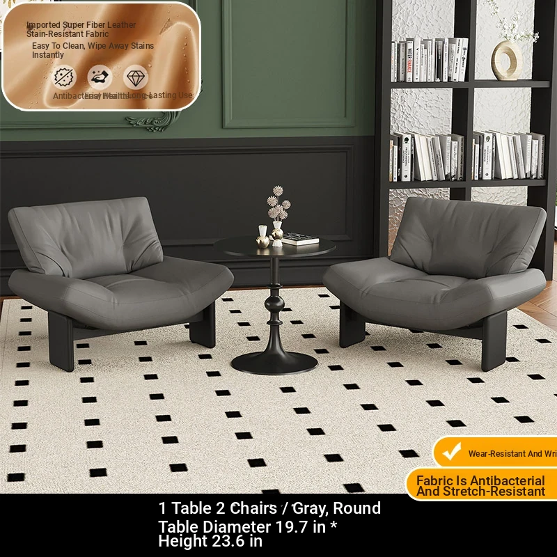 1 Table 2 Chairs + Round Table 19.69in [gray/Ultra fiber leather]]