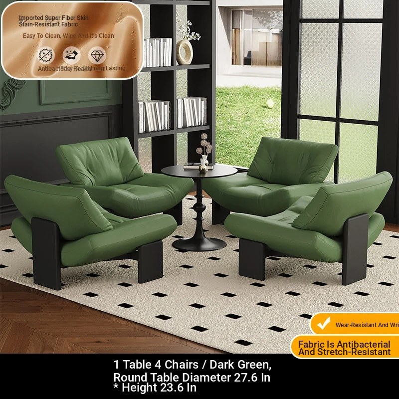 1 Table 4 chairs + Round Table 27.56in [dark green/Ultra fiber leather]]