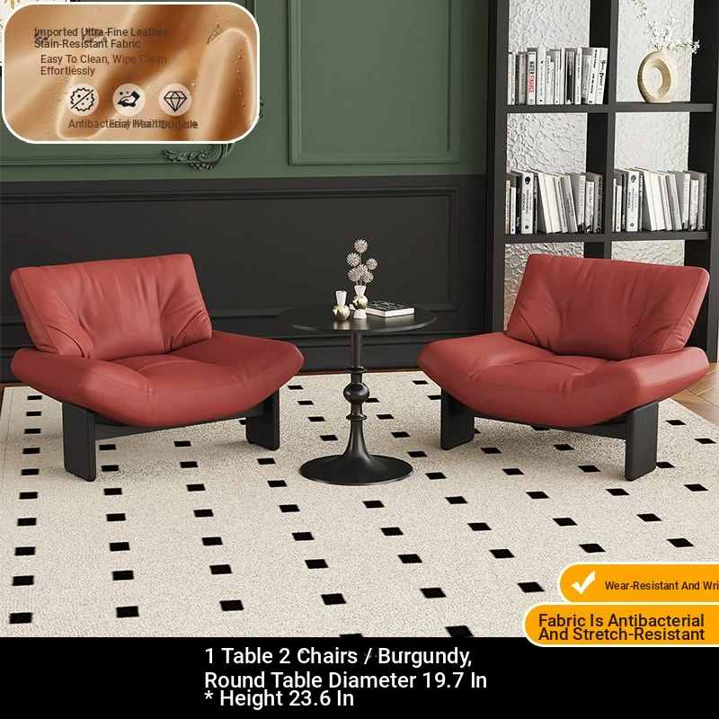 1 Table 2 Chairs + Round Table 19.69in [wine red/Ultra fiber leather]]
