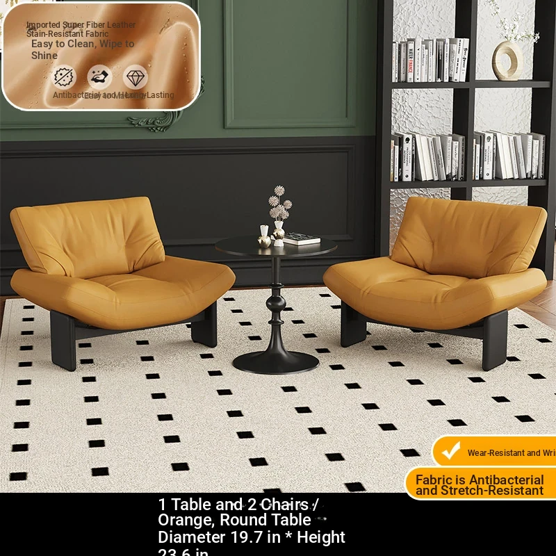 1 Table 2 Chairs + Round Table 19.69in [Orange/Ultra fiber leather]]
