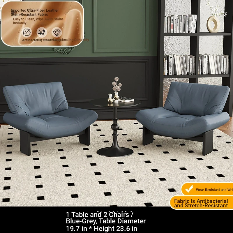 1 Table 2 Chairs + Round Table 19.69in [Blue Gray/fiber leather]]