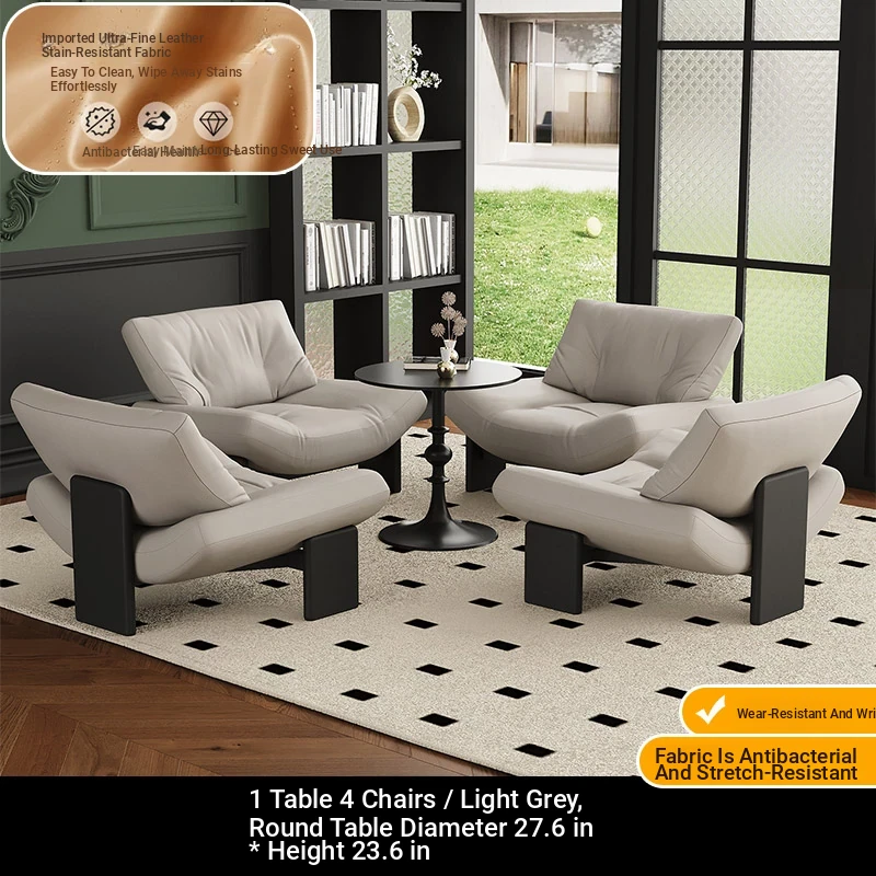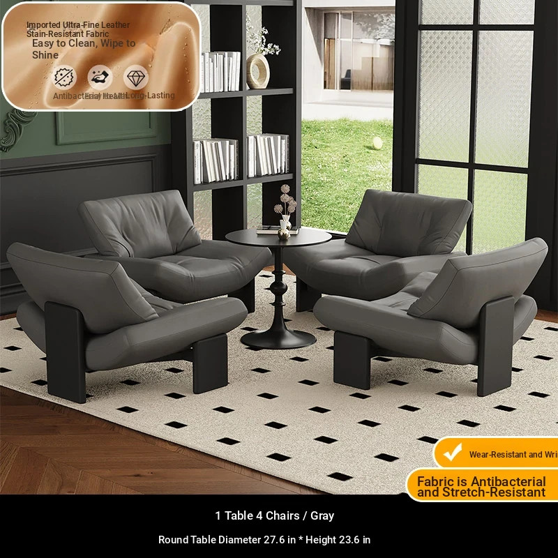 1 Table 4 chairs + Round Table 27.56in [gray/Ultra fiber leather]]