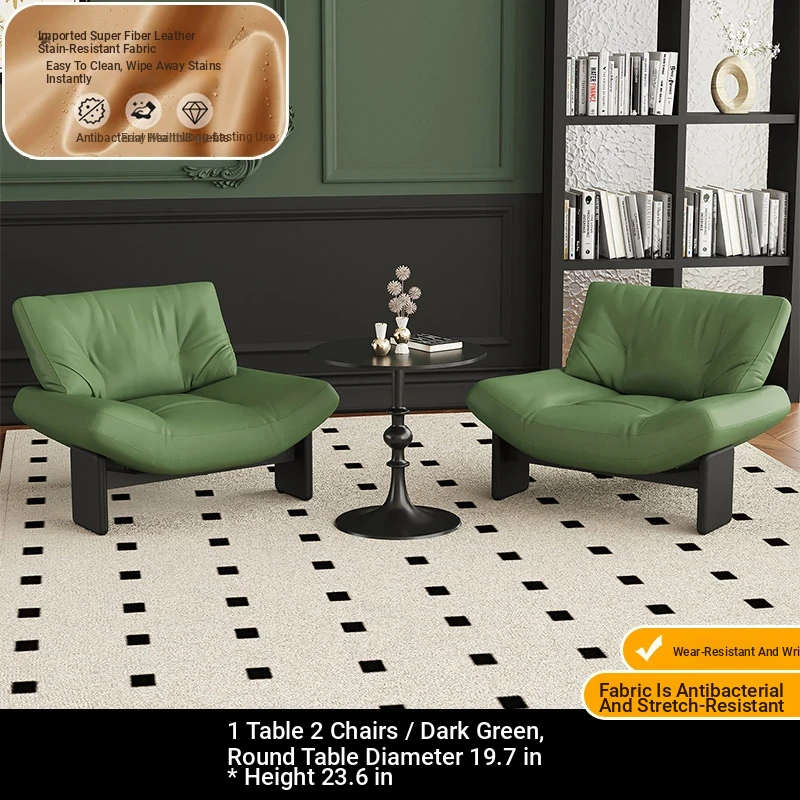 1 Table 2 Chairs + Round Table 19.69in [dark green/Ultra fiber leather]]