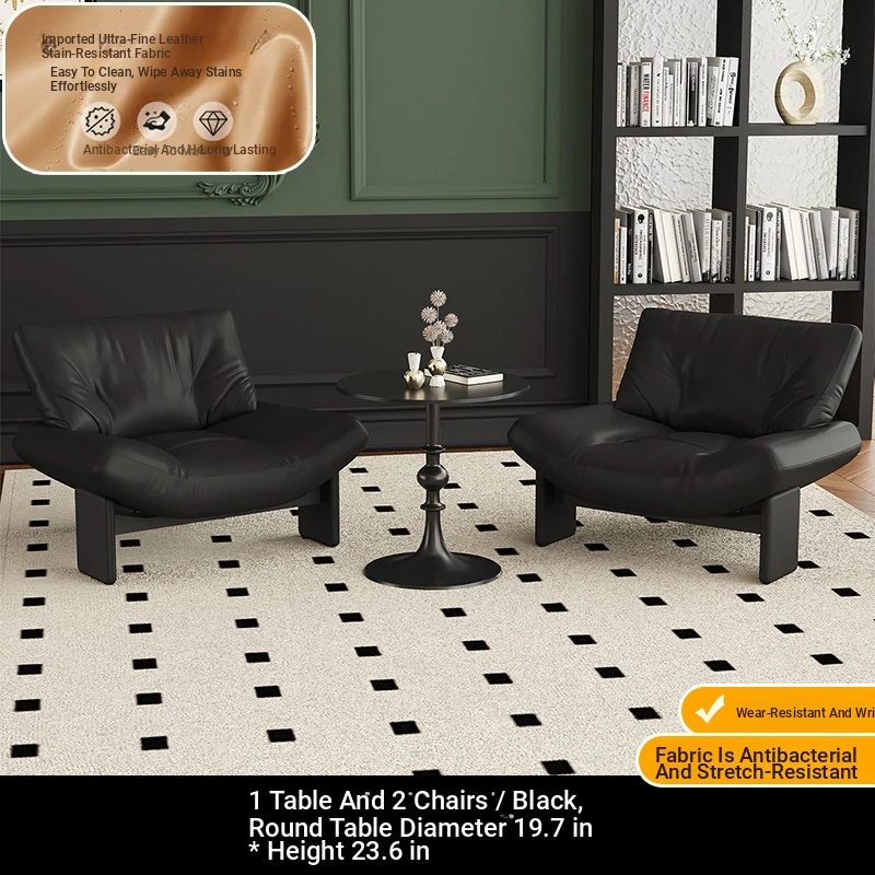 1 Table 2 Chairs + Round Table 19.69in [Black/Ultra fiber leather]]
