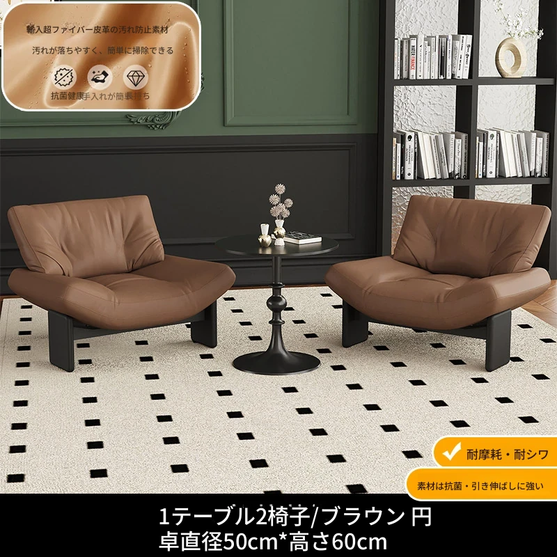 1テーブル2チェア+円卓50cm 【茶色/超繊維皮革】