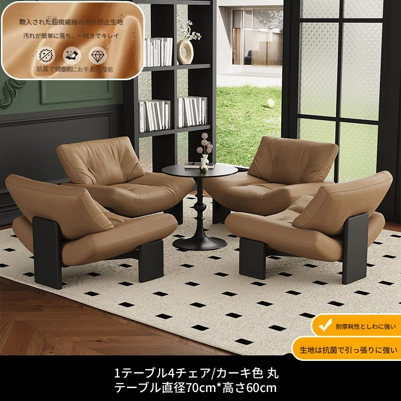 1テーブル4チェア+円卓70cm 【カーキ/超繊維皮革】