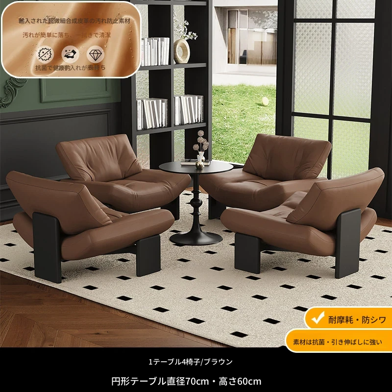 1テーブル4チェア+円卓70cm 【茶色/超繊維皮革】