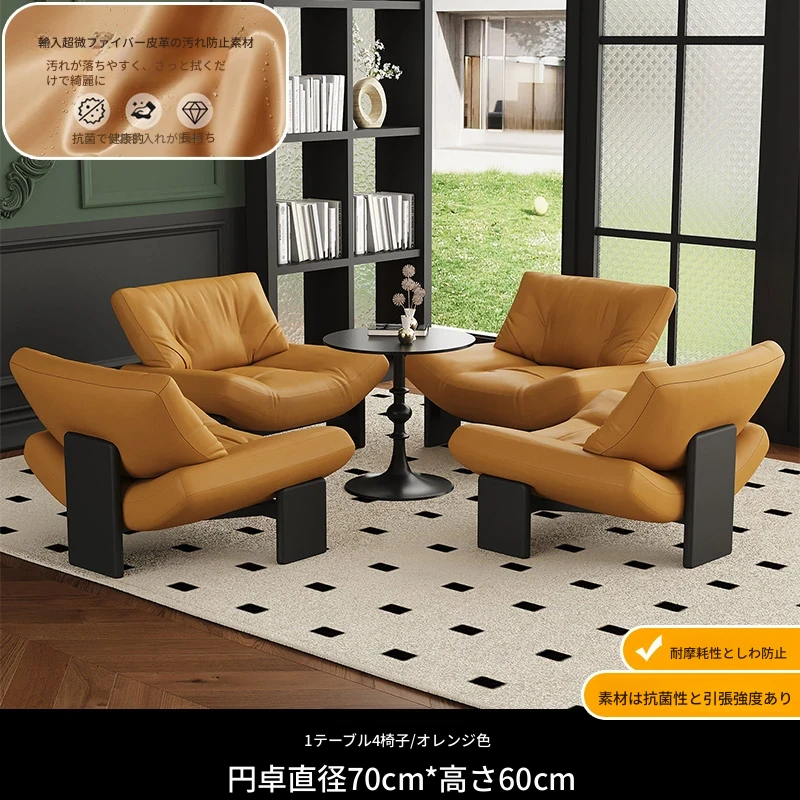 1テーブル4チェア+円卓70cm 【オレンジ/超繊維皮革】