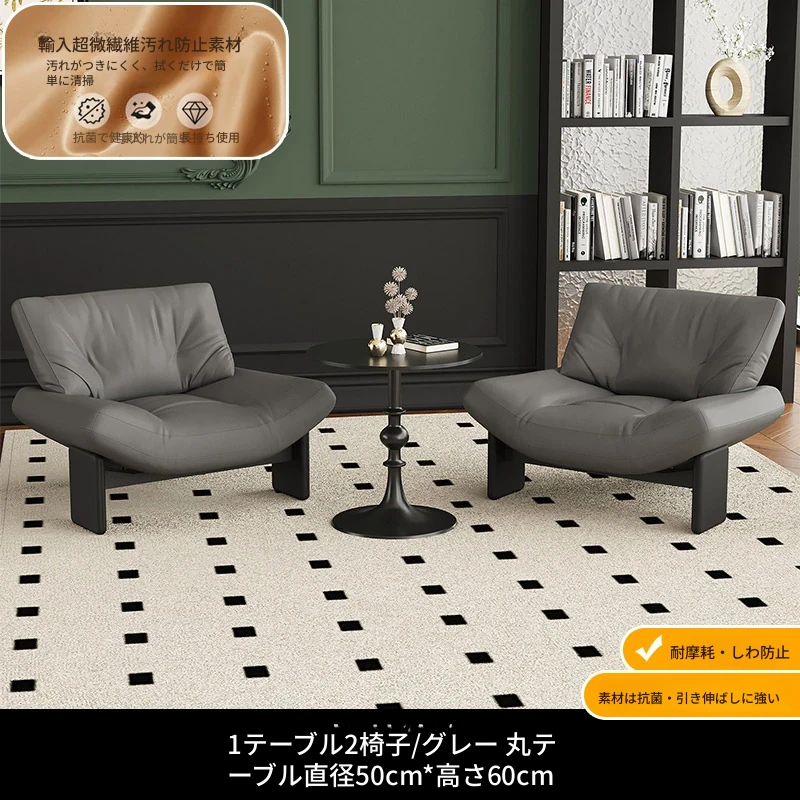 1テーブル2チェア+円卓50cm 【グレー/超繊維皮革】