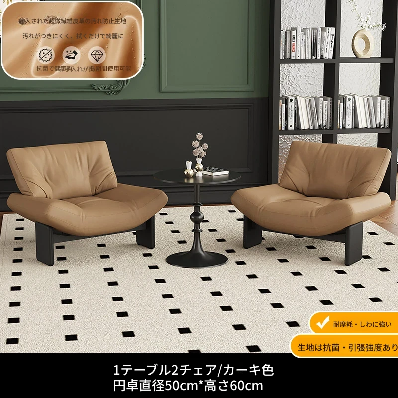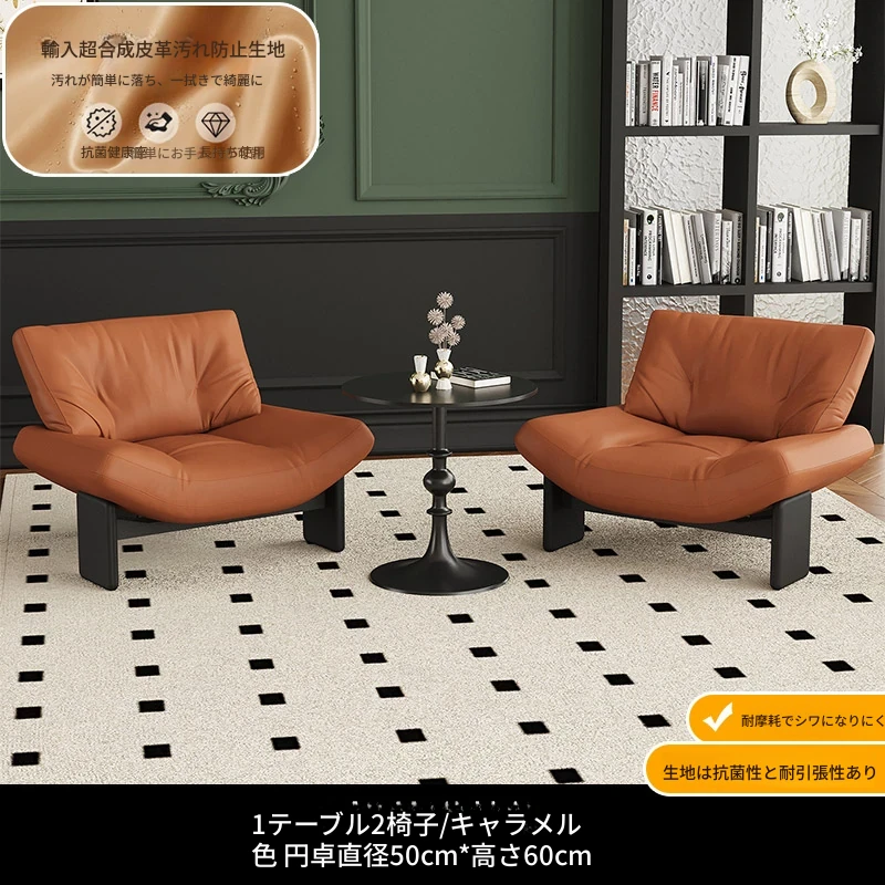 1テーブル2チェア+円卓50cm 【キャラメル/超繊維皮革】
