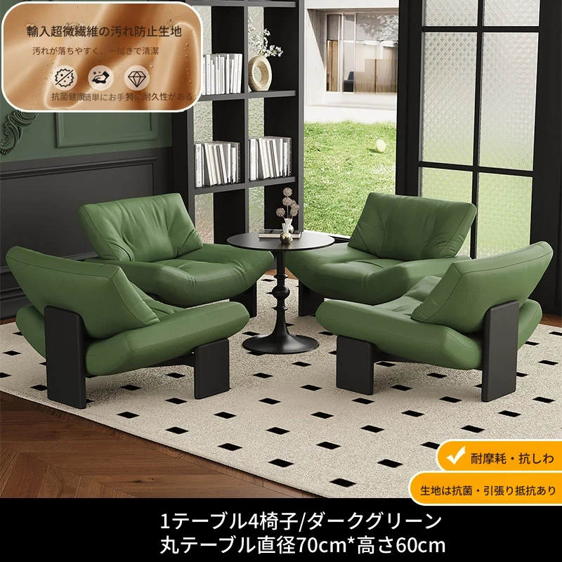 1テーブル4チェア+円卓70cm 【墨緑/超繊維皮革】