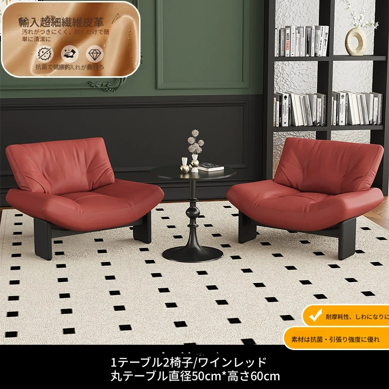 1テーブル2チェア+円卓50cm 【ワインレッド/超繊維皮革】