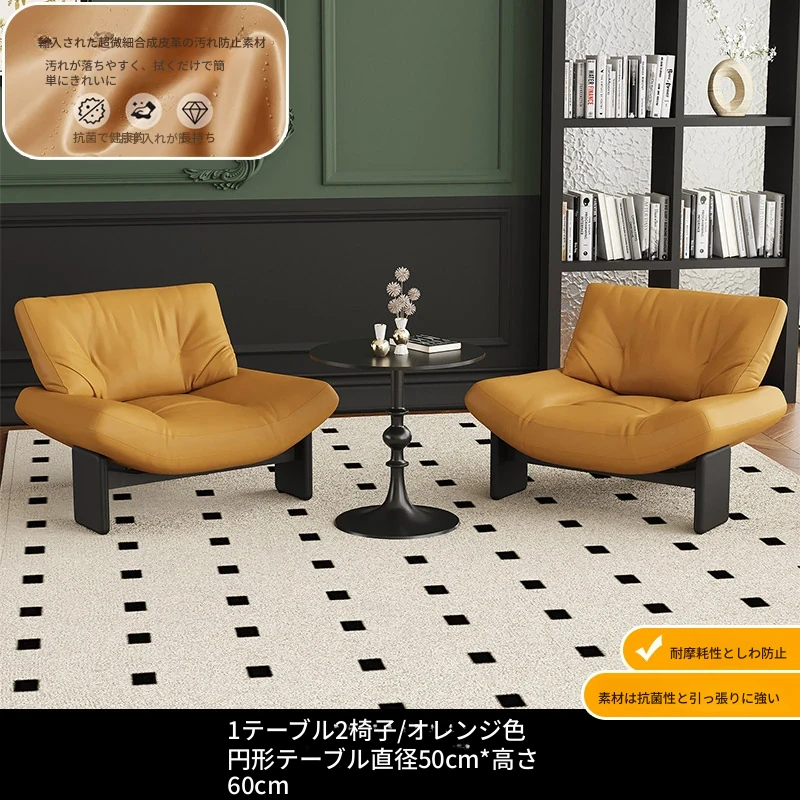 1テーブル2チェア+円卓50cm 【オレンジ/超繊維皮革】
