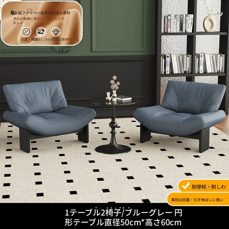 1テーブル2チェア+円卓50cm 【ブルーグレー/超繊維皮革】