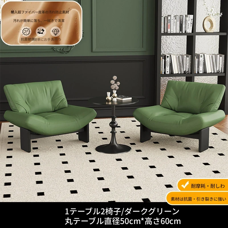 1テーブル2チェア+円卓50cm 【墨緑/超繊維皮革】