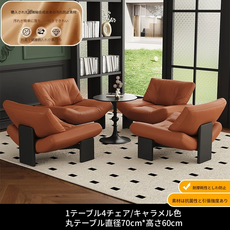 1テーブル4チェア+円卓70cm 【キャラメル/超繊維皮革】