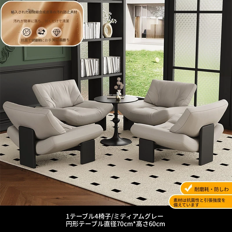 1テーブル4チェア+円卓70cm 【グレー/超繊維皮革】