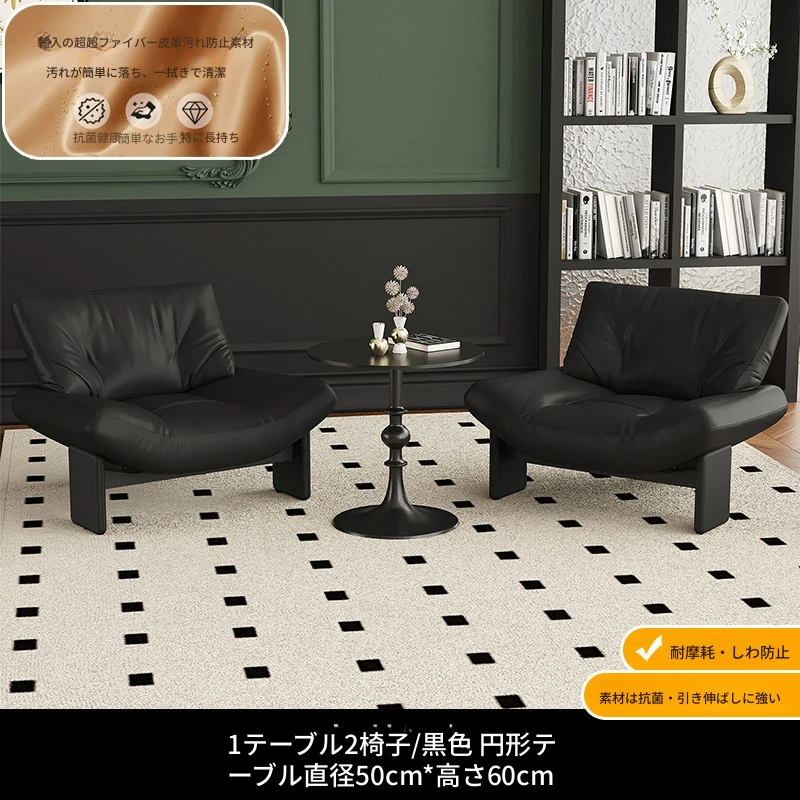 1テーブル2チェア+円卓50cm 【黒/超繊維皮革】