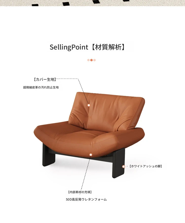 茶色/超繊維皮革汚れ防止/ホワイトアッシュ脚