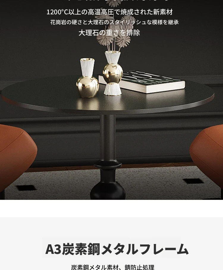 円卓:60*60cm【マットブラック岩板天板】