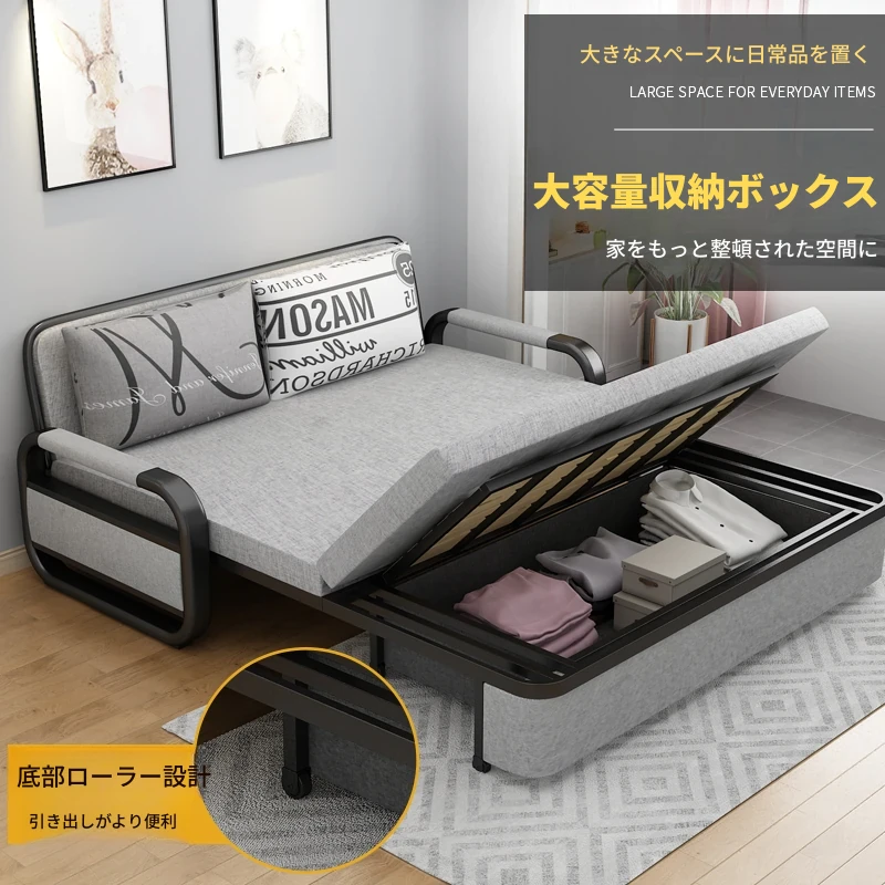 コンパクトで収納力抜群!モダンミニマリストの高箱タタミソファ - 引き出し式カウチで多機能、リビングに最適なスタイルを実現!