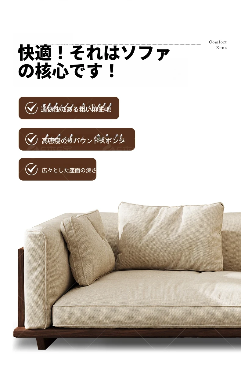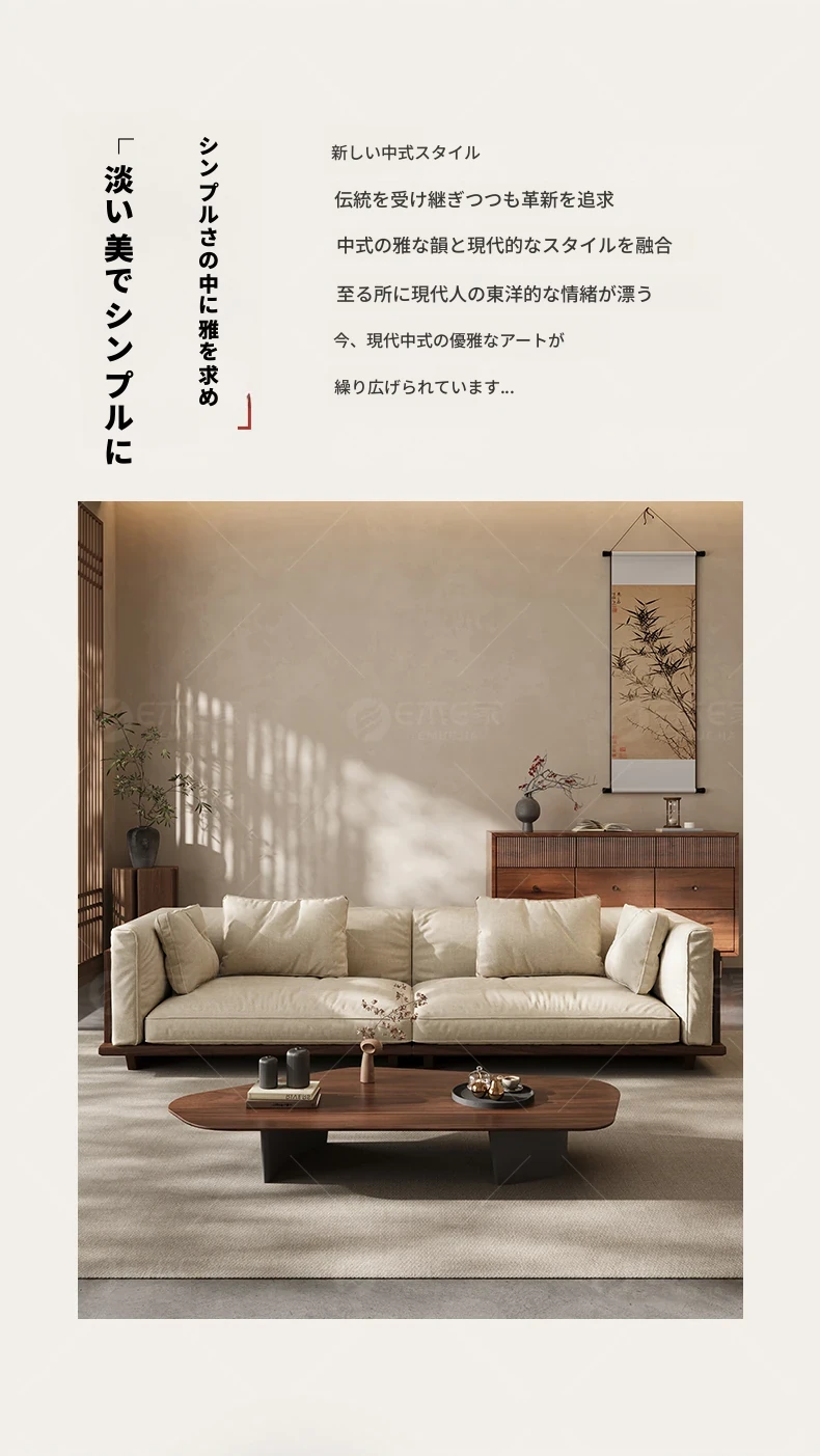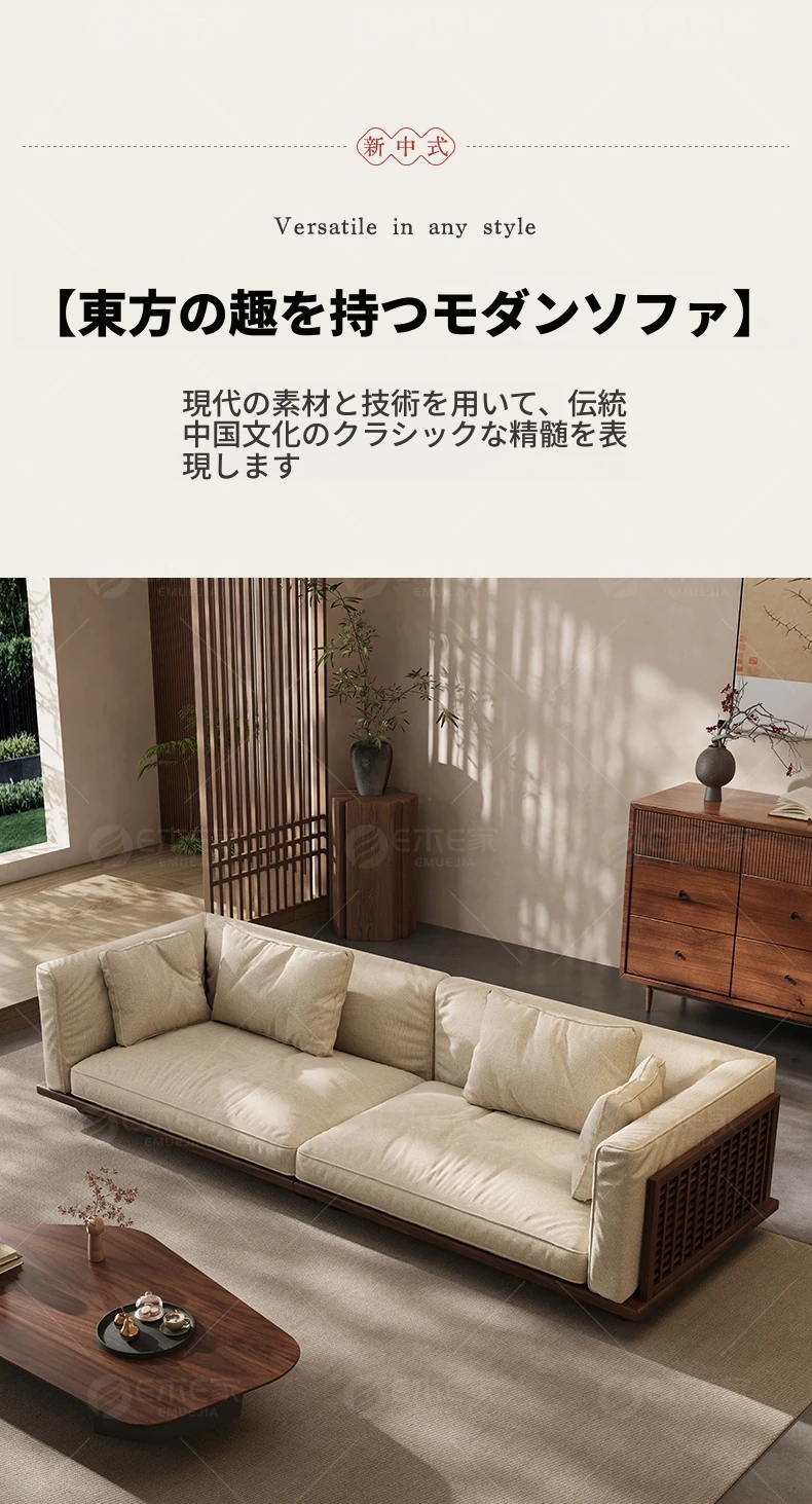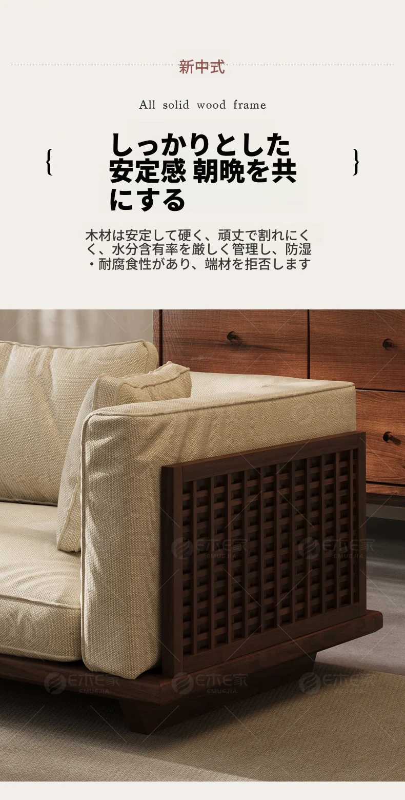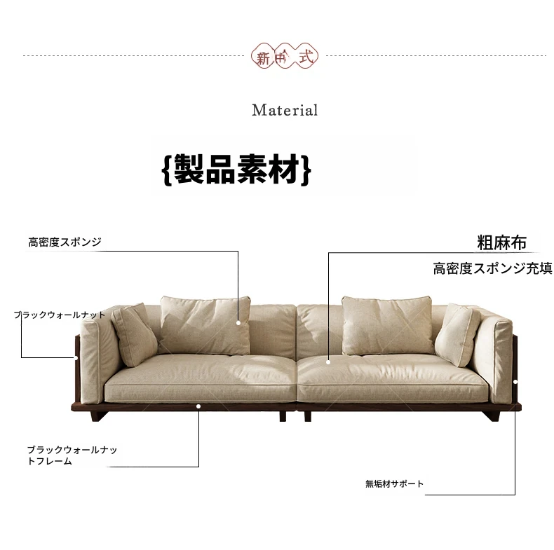 【スタンダード版】4人掛け2.6M【高品質コットンリネン】FASグレードブラックウォールナット【宋式美学】