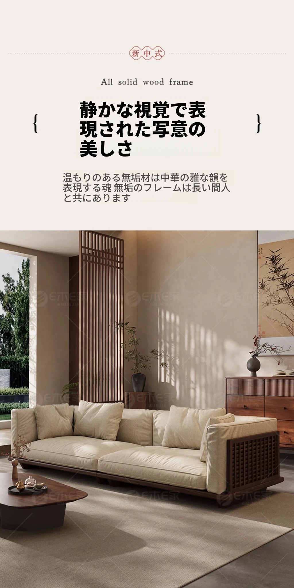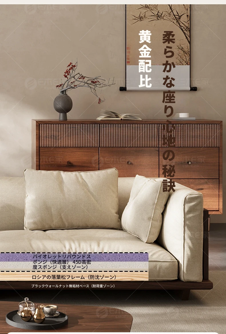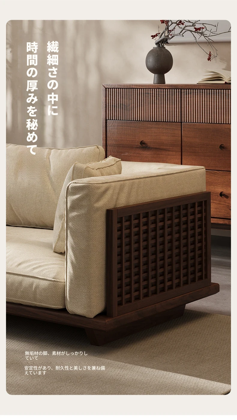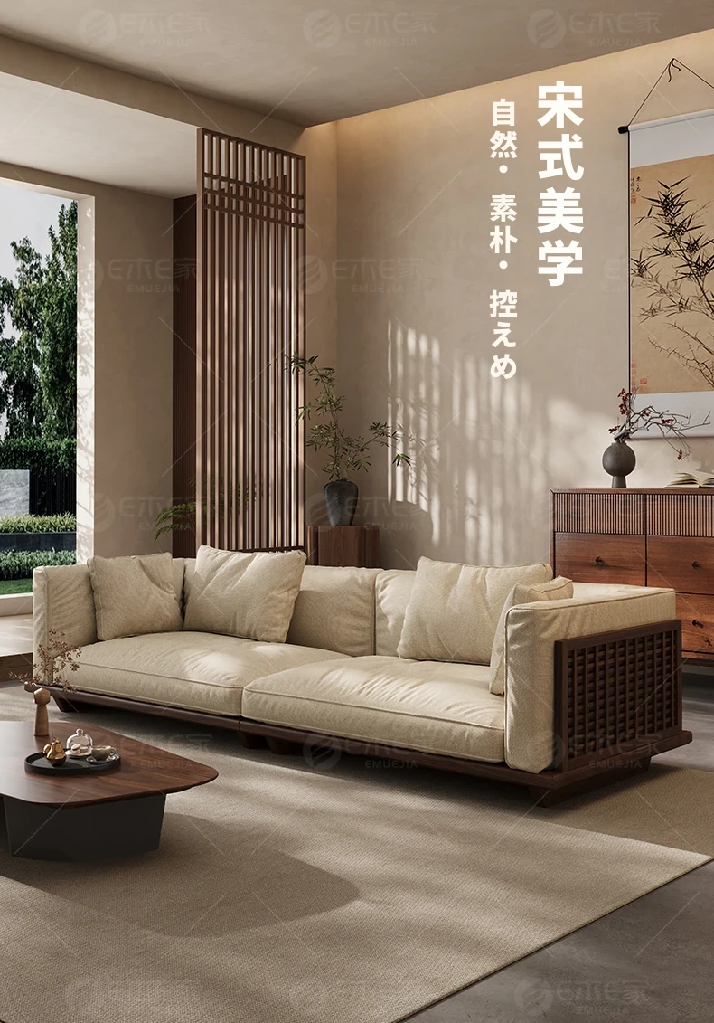 【スタンダード版】4人掛け2.6M【高品質コットンリネン】FASグレードブラックウォールナット【宋式美学】