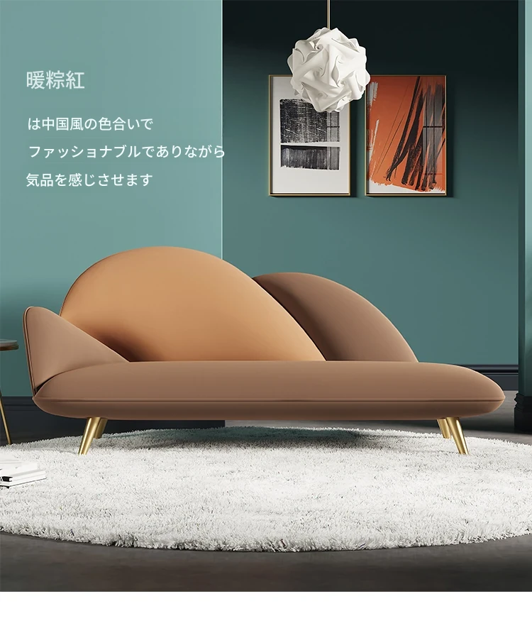 北欧スタイルの貴妃椅子 - 本革の贅沢な一人用ソファ、シンプルでモダンなデザイン、小さな部屋にもぴったり!快適な寝心地でリラックスしたひとときをお楽しみください。