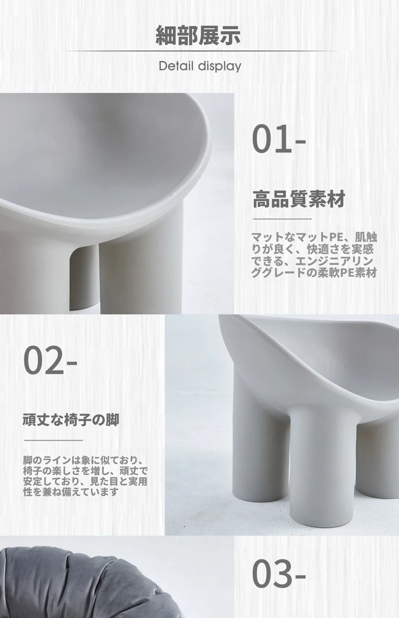 北欧風のおしゃれな象脚チェア - クッション付きプラスチック製リラックスデザイン、インスタ映えする民宿ソファチェア!快適さとスタイルを両立したあなたの特別な空間にぴったり!