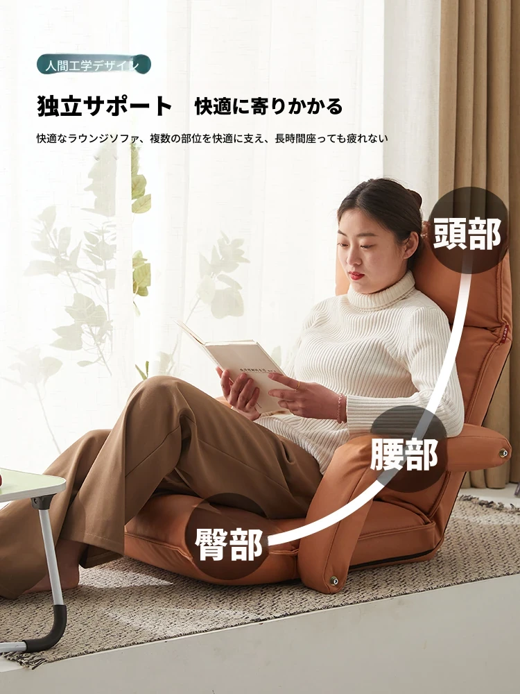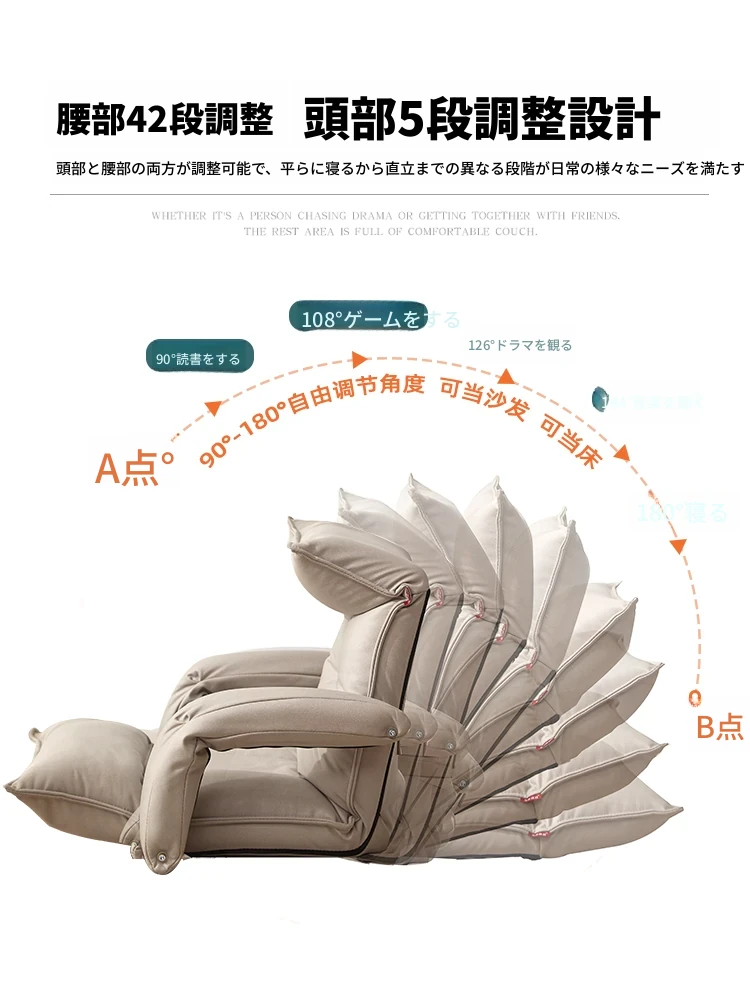 アームレスト付き-テクノロジー布 貴妃オレンジ 頭部5段階+腰部42段階調整可能+座部2cmラテックス