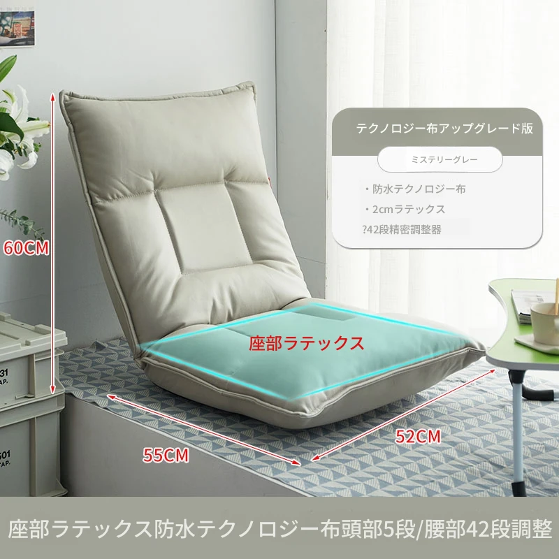 テクノロジー布 神秘グレー 頭部5段階+腰部42段階調整可能+座部2cmラテックス