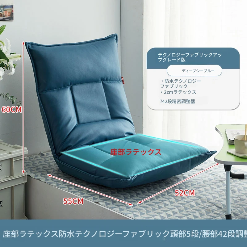 テクノロジー布 深海ブルー 頭部5段階+腰部42段階調整可能+座部2cmラテックス