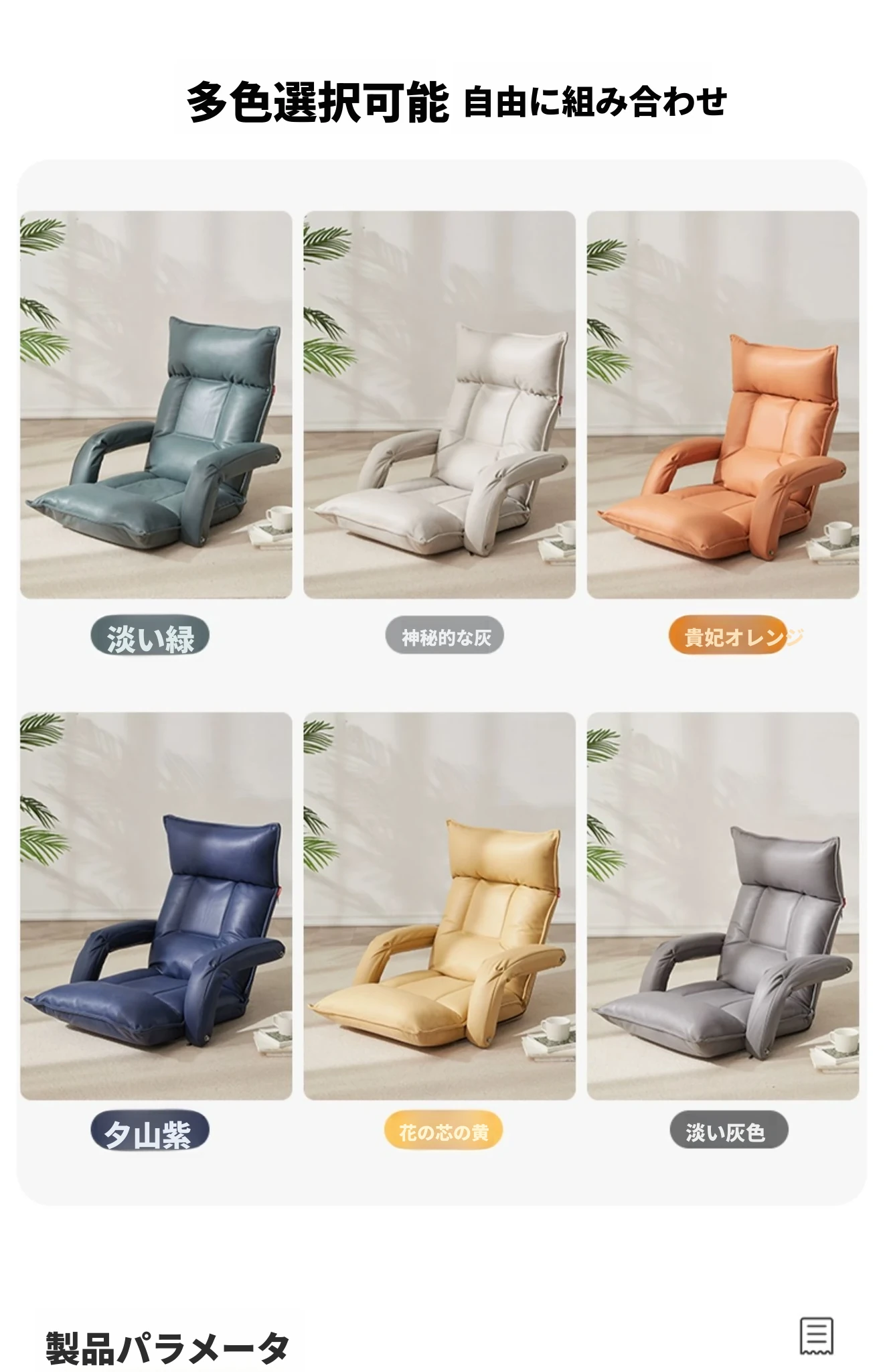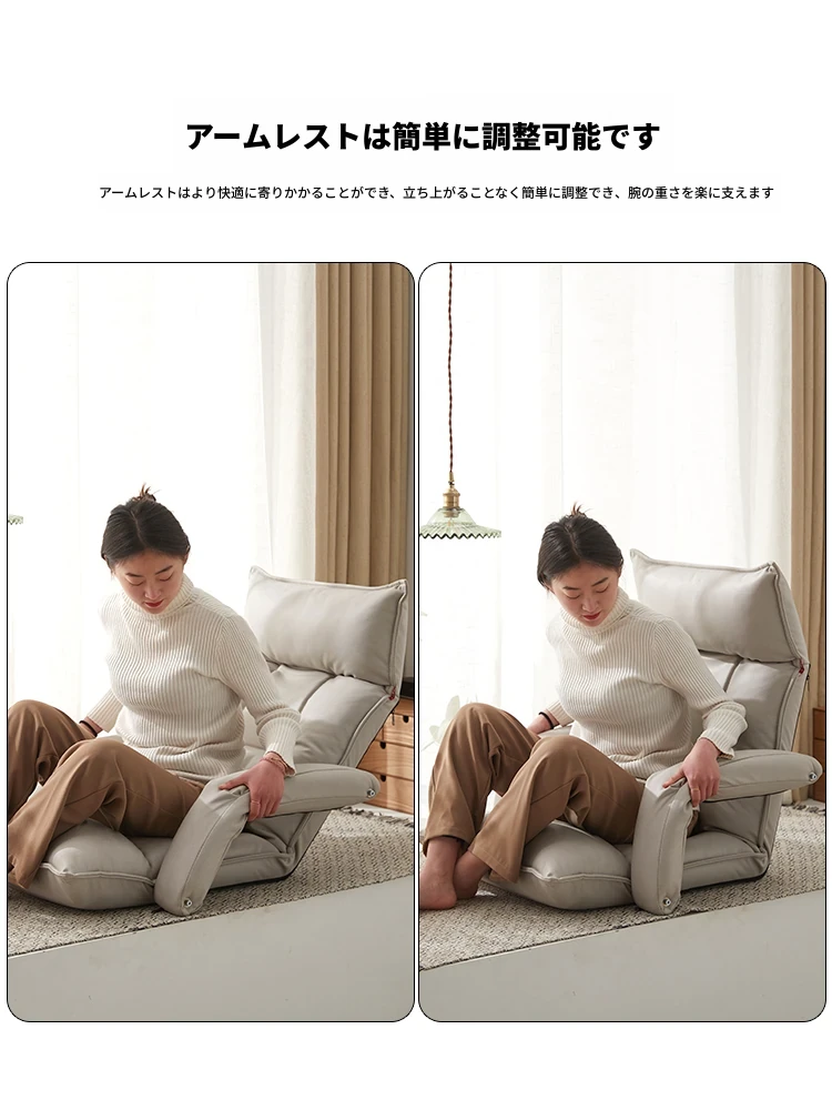 アームレスト付き-テクノロジー布 淡いグレー 頭部5段階+腰部42段階調整可能+座部2cmラテックス
