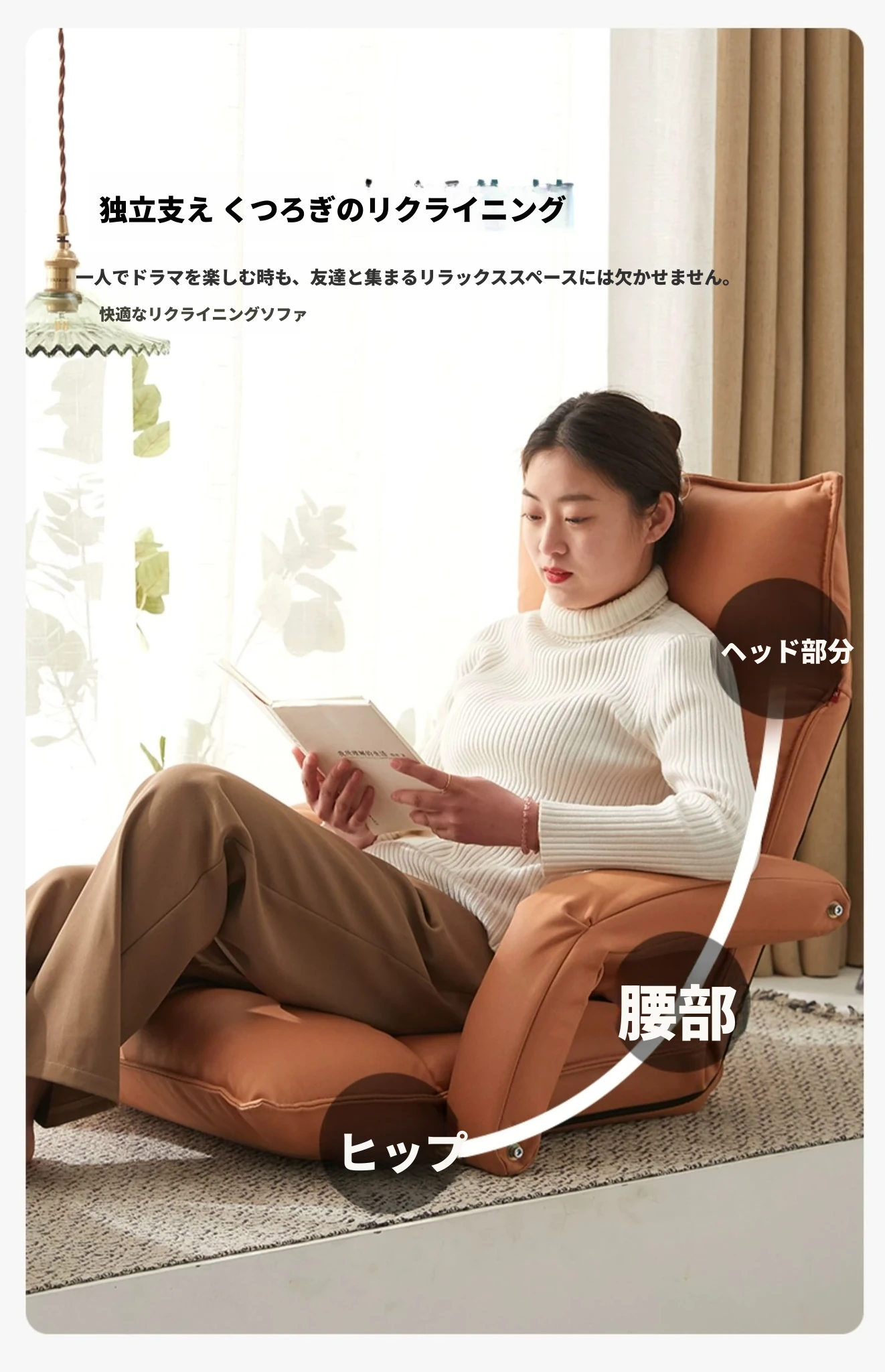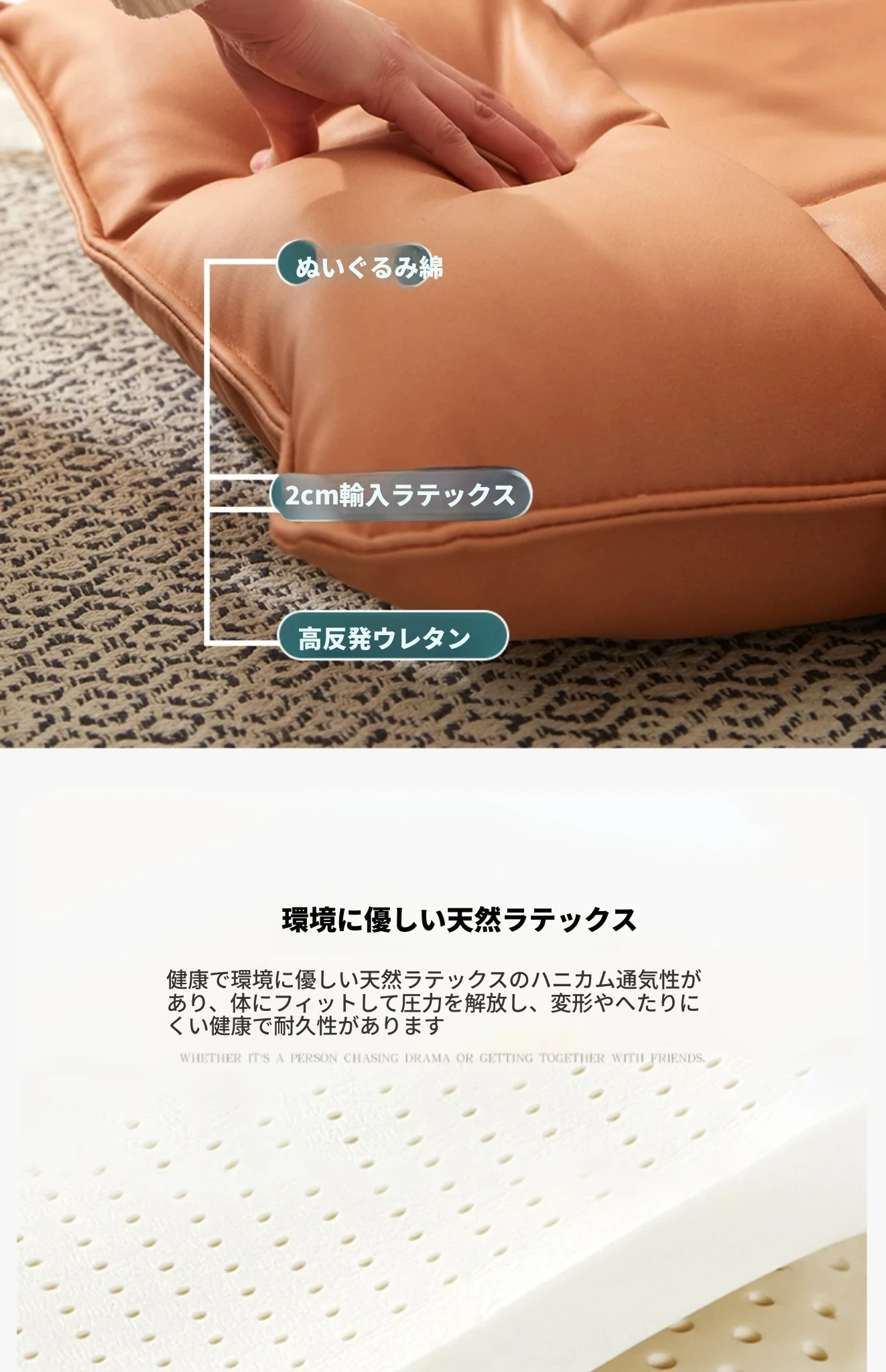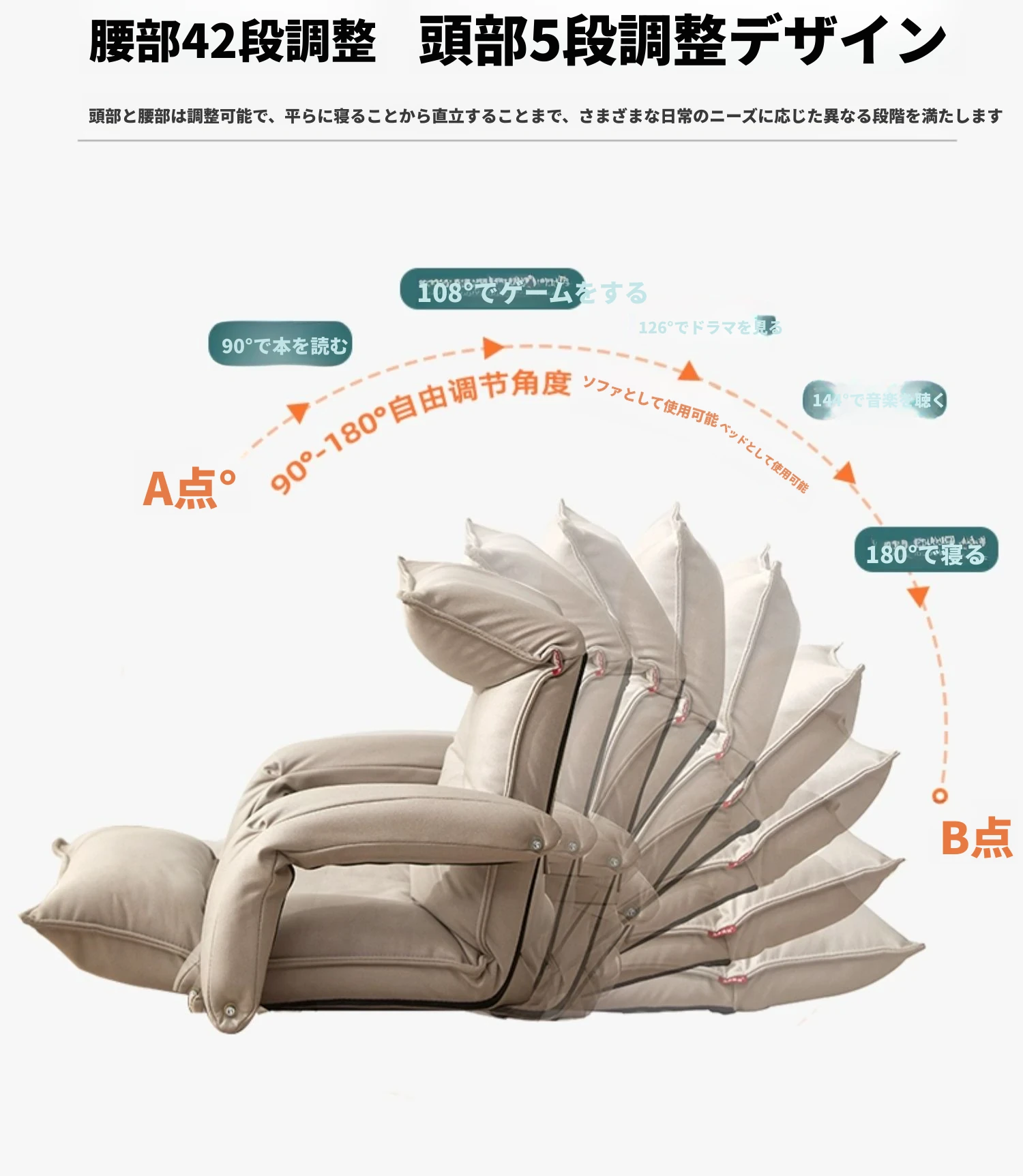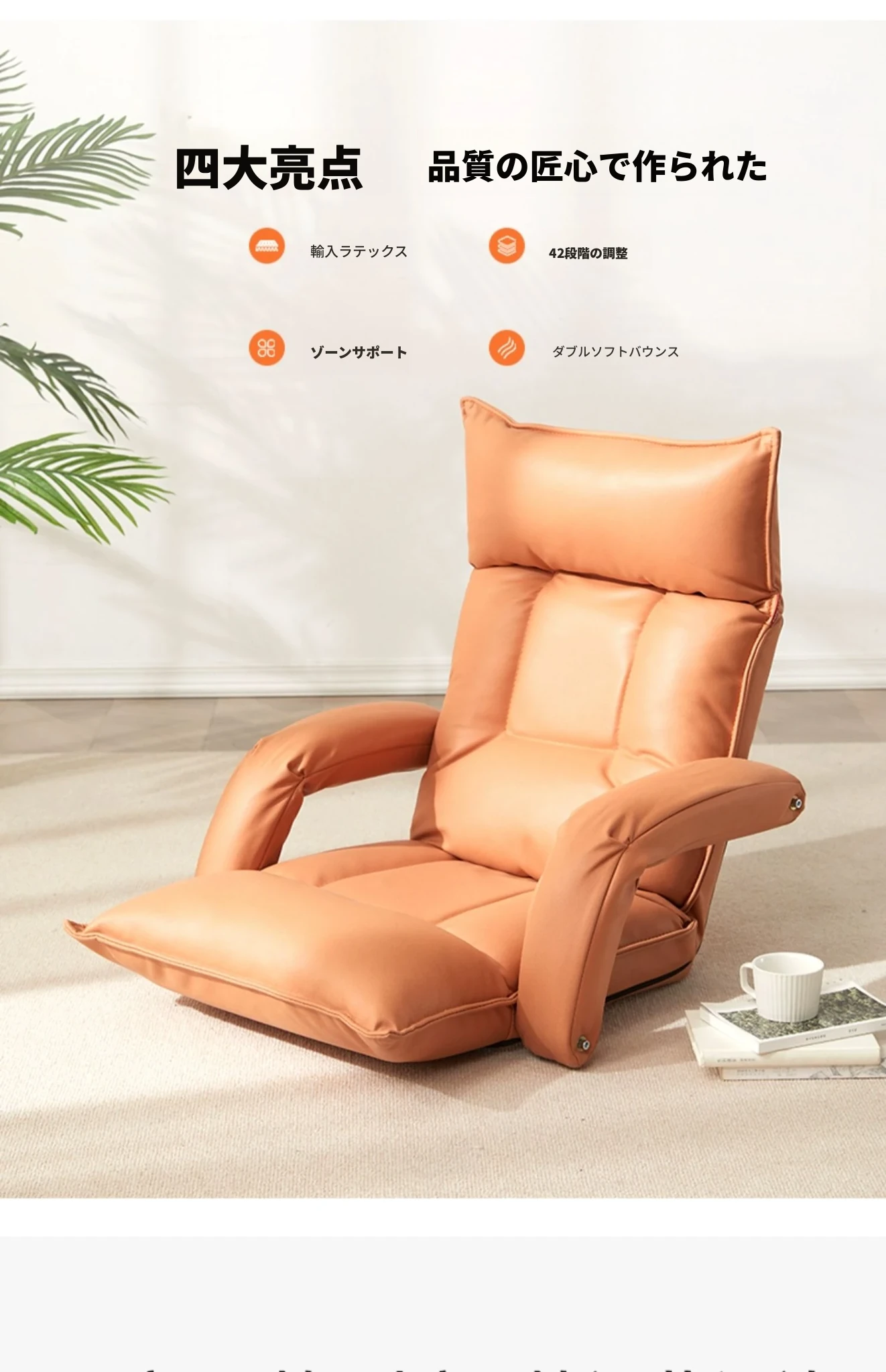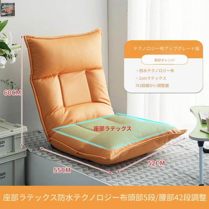 テクノロジー布 貴妃オレンジ 頭部5段階+腰部42段階調整可能+座部2cmラテックス