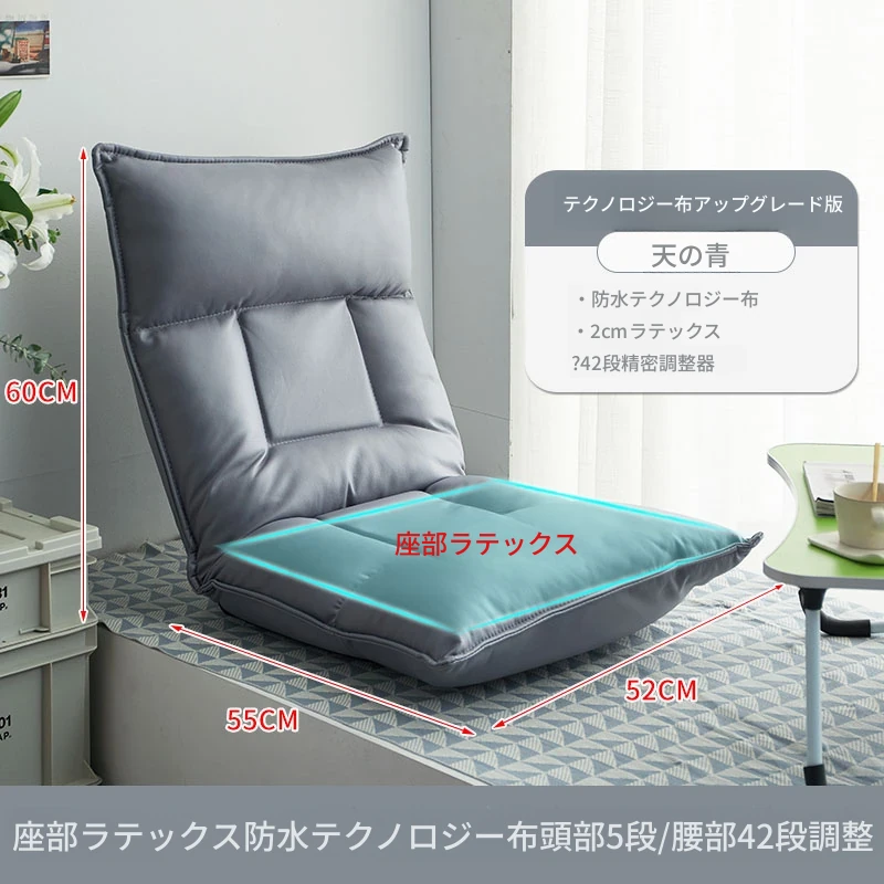 テクノロジー布 天空の青 頭部5段階+腰部42段階調整可能+座部2cmラテックス