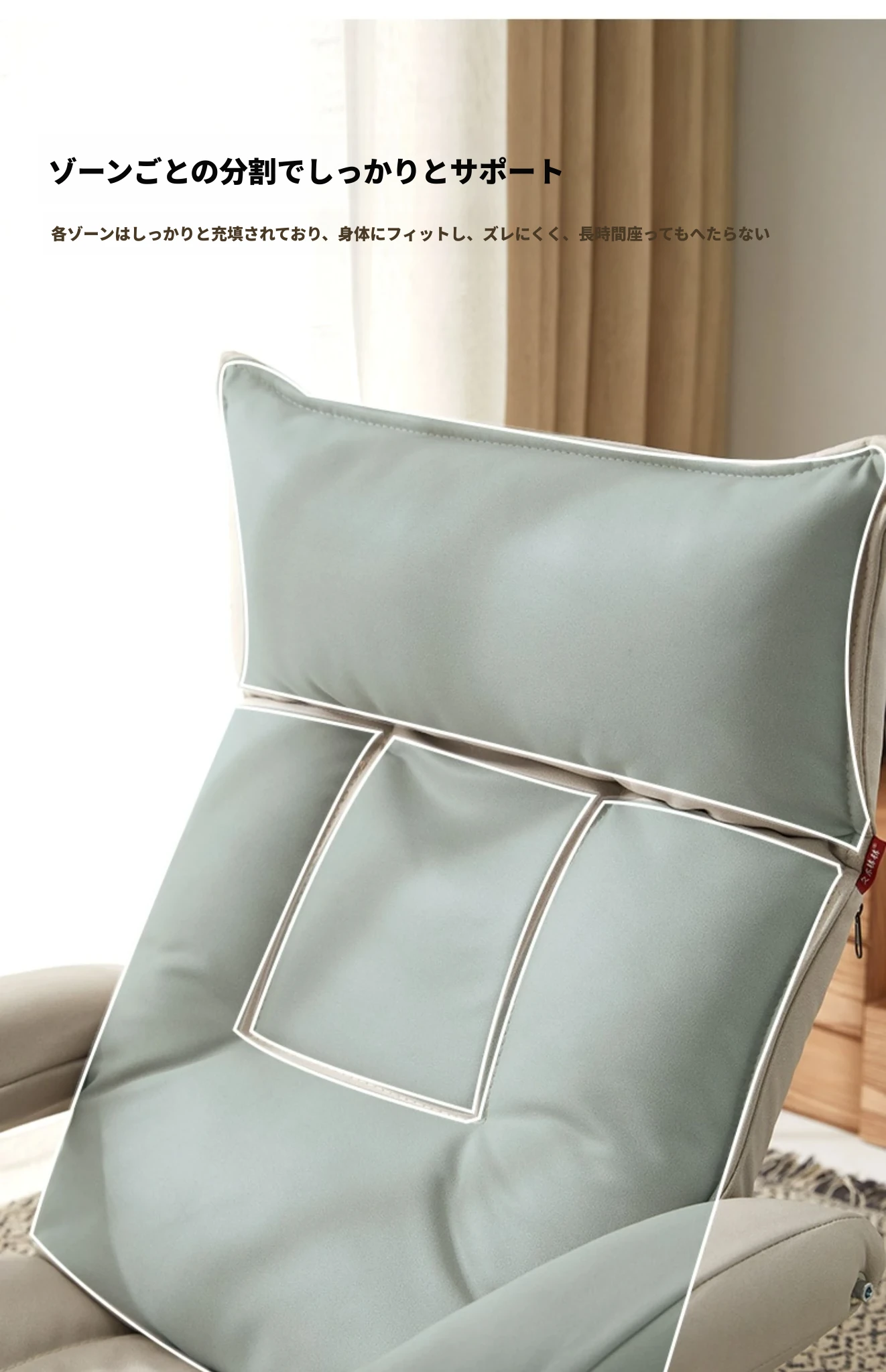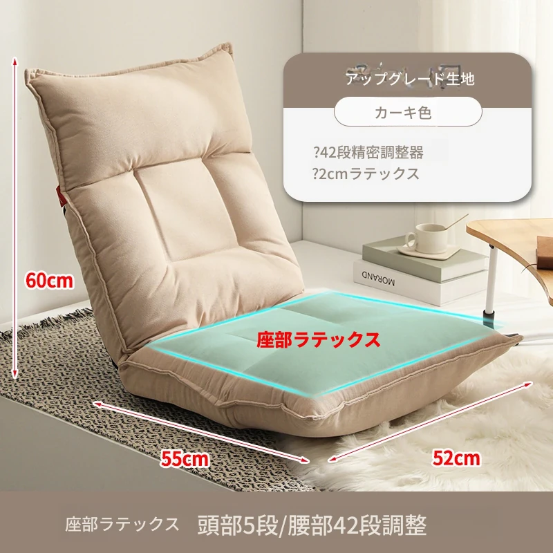 ファイバーサテン カーキ色 頭部5段階+腰部42段階調整可能+座部2cmラテックス
