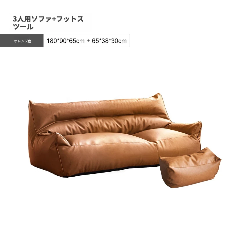 オレンジレザーのトリプルソファ+オットマン 180*90*65