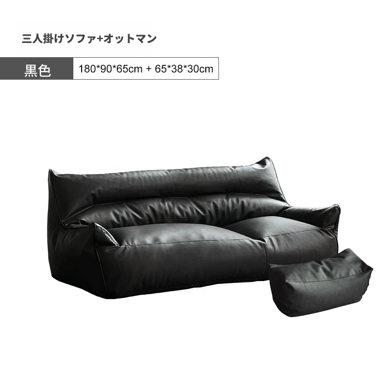 ブラックレザーのトリプルソファ+オットマン 180*90*65