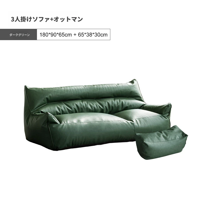 ダークグリーンレザーのトリプルソファ+オットマン 180*90*65