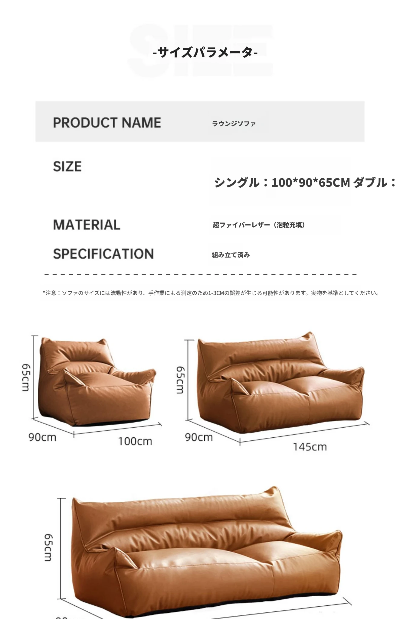 大シングルソファ(身長165cm以上に適合) 100*90*65